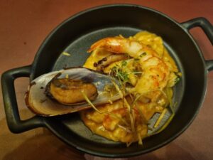 Pratos principais: Capeletti in brodo: massa artesanal em caldo delicado, finalizada com parmesão; Ragu de cogumelos: fettuccine artesanal alho e óleo, servido com ragu de cogumelos Paris, Shitake e Shimeji; Risoto de frutos do mar: arroz arbóreo, camarão, lula, queijo parmesão e raspas de limão; Mignon suíno au poivre: mignon suíno ao molho de pimenta e trufa negra, acompanhado de purê de inhame; Mignon em crosta de cogumelos: mignon grelhados em crosta de cogumelos, servido com pappardelle, queijo parmesão e toque de hortelã; Polpetone com gnocchi frito: polpetone de carne vermelha com gnocchi crocante ao molho quatro queijos.